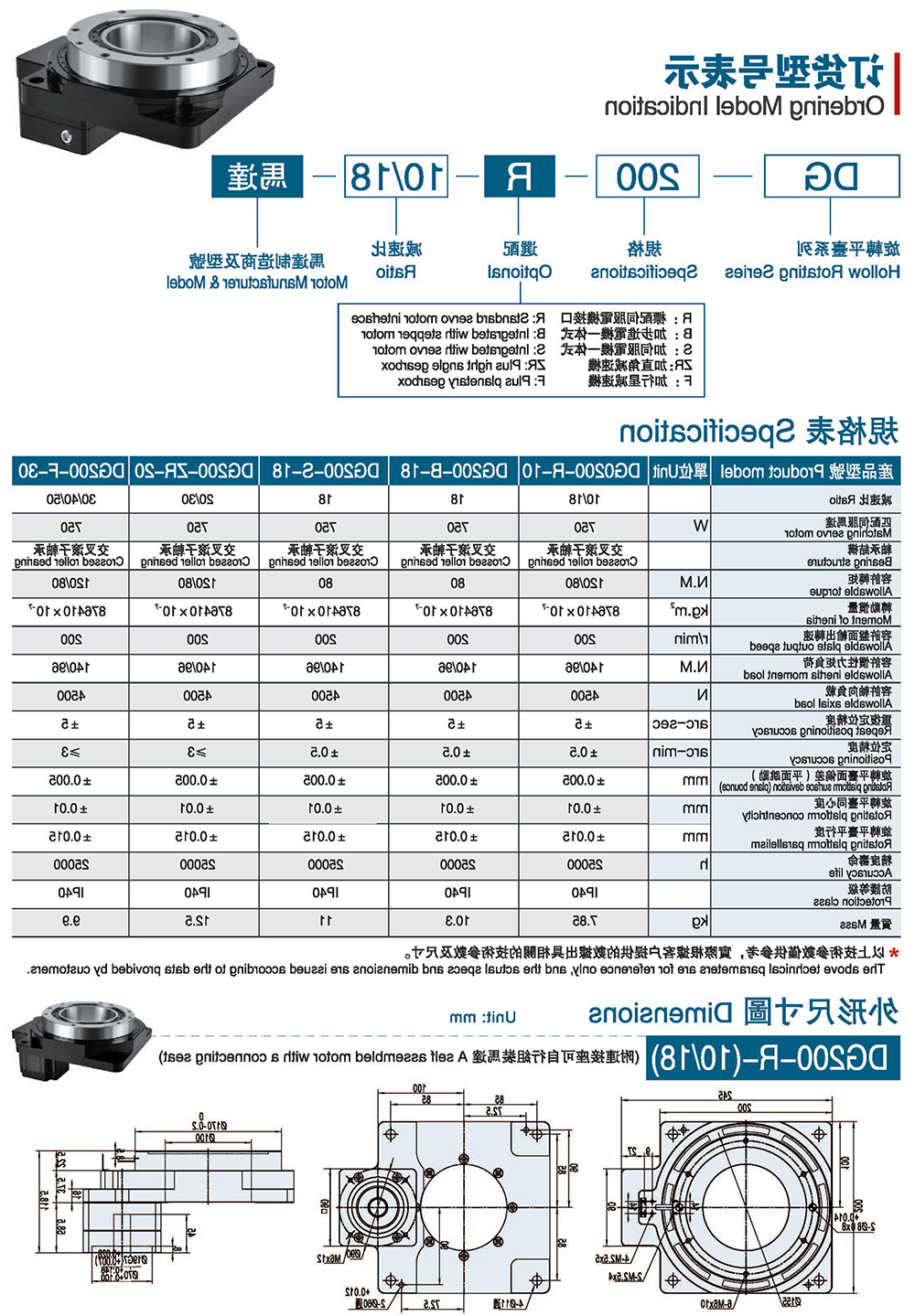反复定位精度为±15sec空转(Lost motion)为2min,角度传达误差为 4min